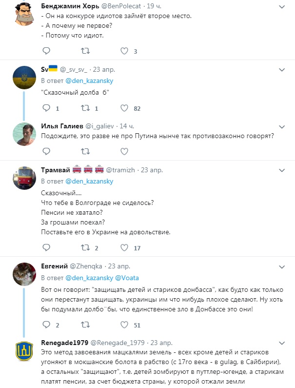 Нытье боевика позабавило не только Казанского, но и других пользователей соцсети: