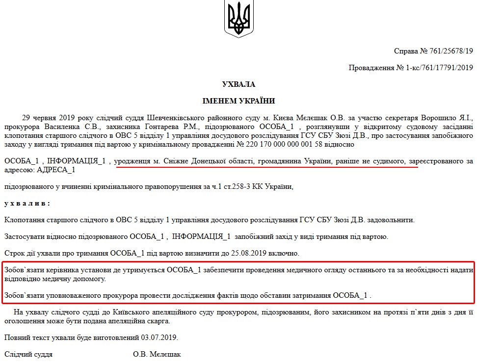 Похищение "Борисыча" подтвердили многие источники из "ДНР". Более того, в открытом доступе есть решение Шевченковского райсуда Киева. Согласно ему, боевик будет находиться под стражей до 25 августа 2019 года.