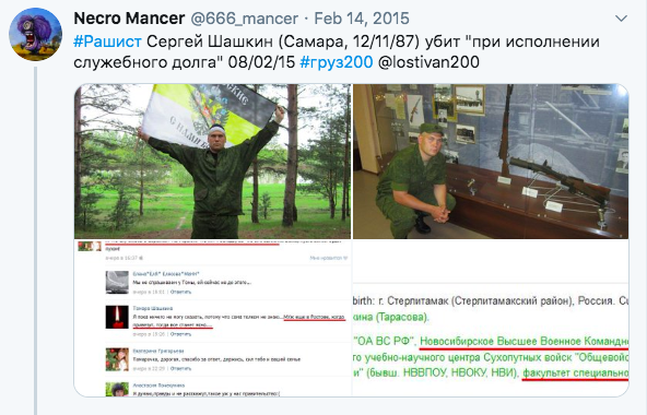 Новые подробности о ликвидированном оккупанте Шашкине обнародовал в Twitter блогер Necro Mancer, передает "Диалог.UA".