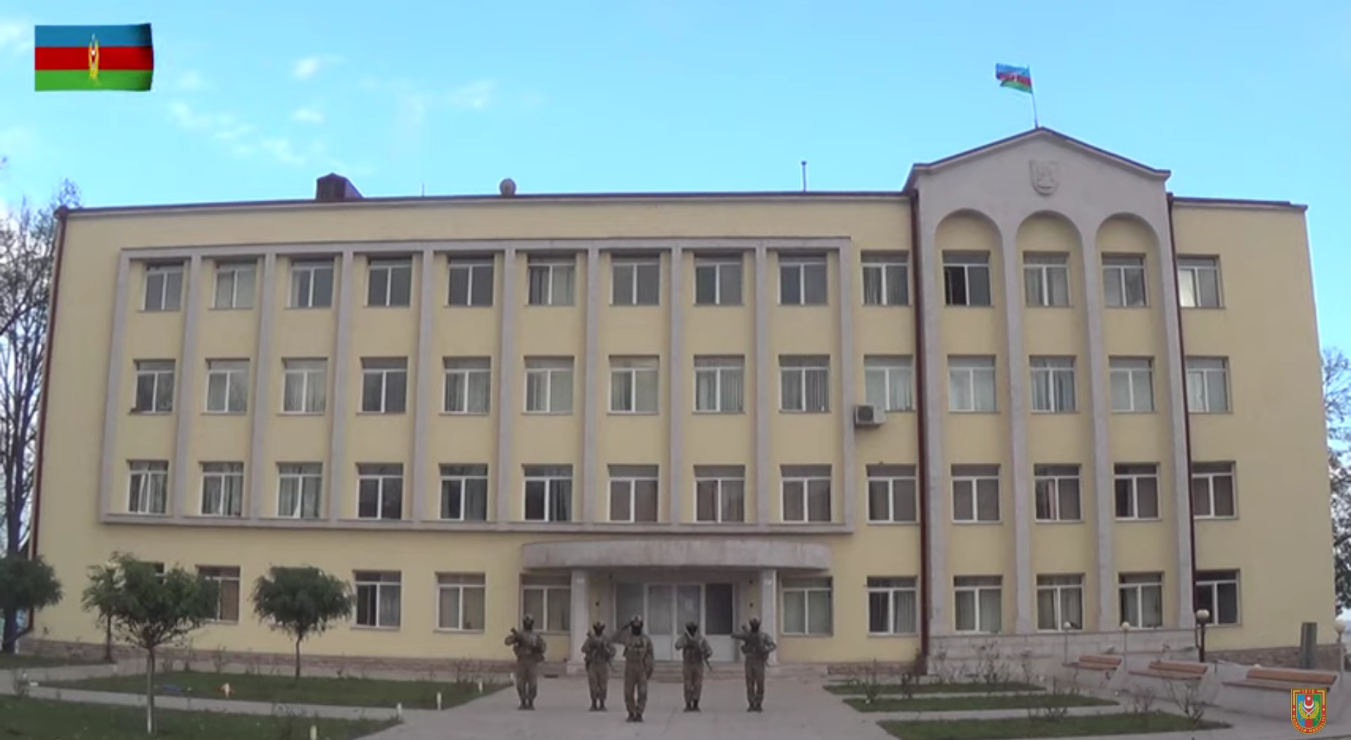 Министерство обороны Азербайджана опубликовало видео. На кадрах видно, как азербайджанские солдаты водрузили флаг над городом.