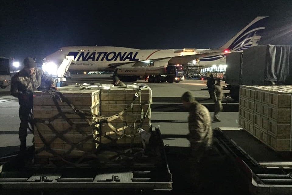 В ночь на воскресенье, 13 февраля, в Украину прибыли три самолета Вооруженных сил США. Они доставили военные грузы украинской армии.