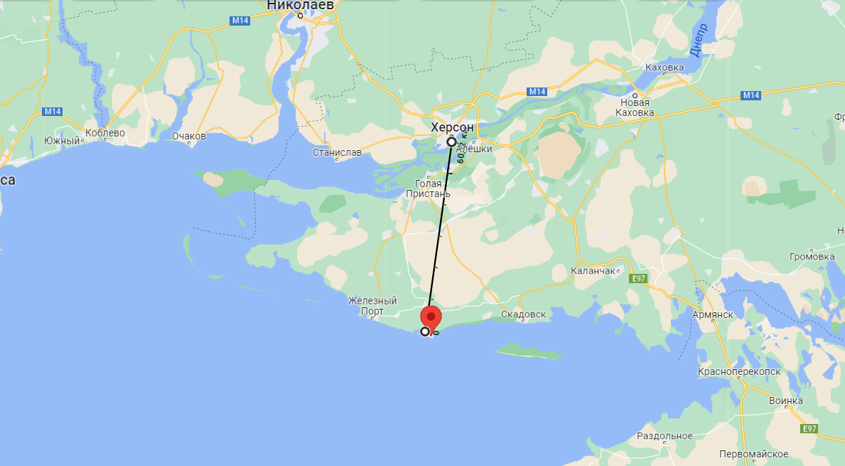 Военный объект российской армии к 60 км южнее Херсона ночью стал целью ракетного удара ВСУ.