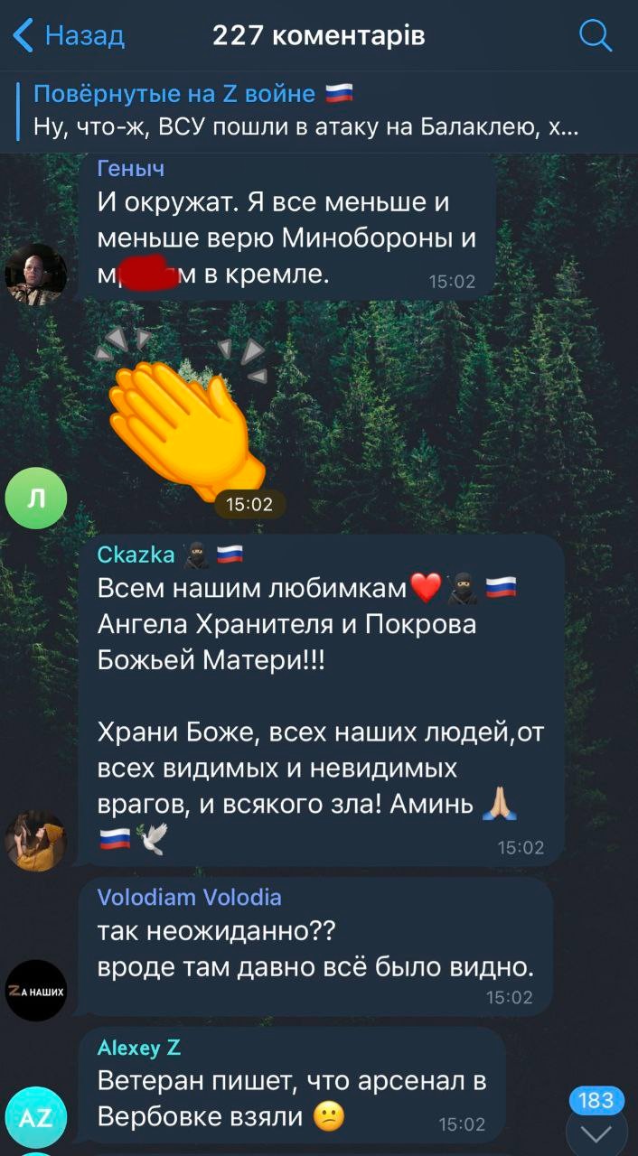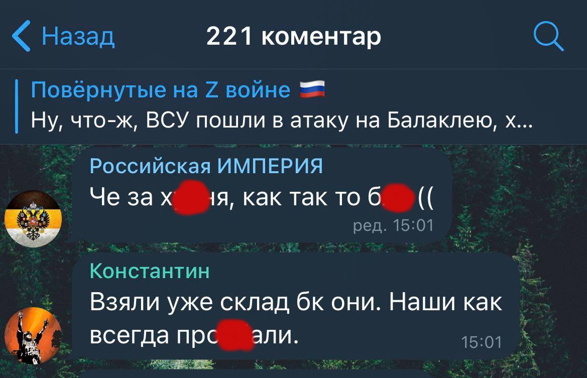 Среди поклонников "спецоперации" в соцсетях ширится масштабная "зрада" из-за неожиданного наступления ВСУ под Балаклеей. Особенно их возмущает новость о том, что украинским войскам удалось быстро прорваться и захватить российский склад с боеприпасами.
