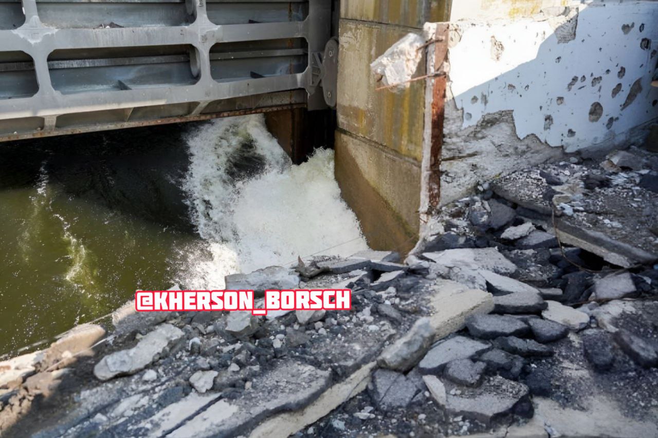 С того момента, как враг взорвал несколько шлюзов ГЭС, уровень воды держится на отметке 13 метров над уровнем моря, что на 3 метра ниже обычного.