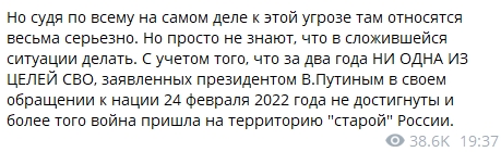 "За два года НИ ОДНА ИЗ ЦЕЛЕЙ "СВО", заявленных президентом В. Путиным в своем обращении к нации 24 февраля 2022 года, не достигнуты. И более того, война пришла на территорию "старой" России", - пожаловался Z-полковник.