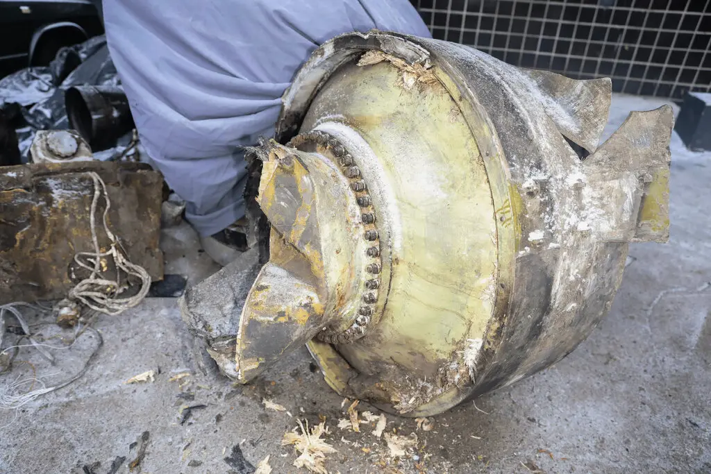 Остатки двигателя, использовавшегося для наведения северокорейской баллистической ракеты малой дальности Hwasong-11, примененной при атаке на Украину 6 августа