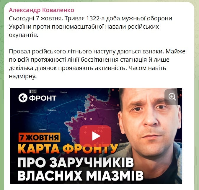 Коваленко подчеркнул, что украинские силы продолжают системно давить на врага, особенно в районах Лимана и Северска, где российские части несут потери и вынуждены отступать. По его словам, осенне-зимний период для россиян станет временем стагнации и замедления, а для Украины - возможностью улучшить позиции и осложнить им жизнь.