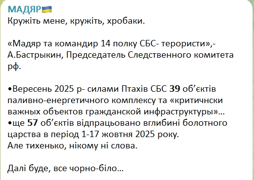 Предстедатель российского Следкома Александр Бастрыкин выдвинул серезные обвинения 14-му полку Сил беспилотных систем ВСУ, а также командующему СБС Роберту Бровди под позывным Мадяр. Офицер в ответ высмеял оккупантов.