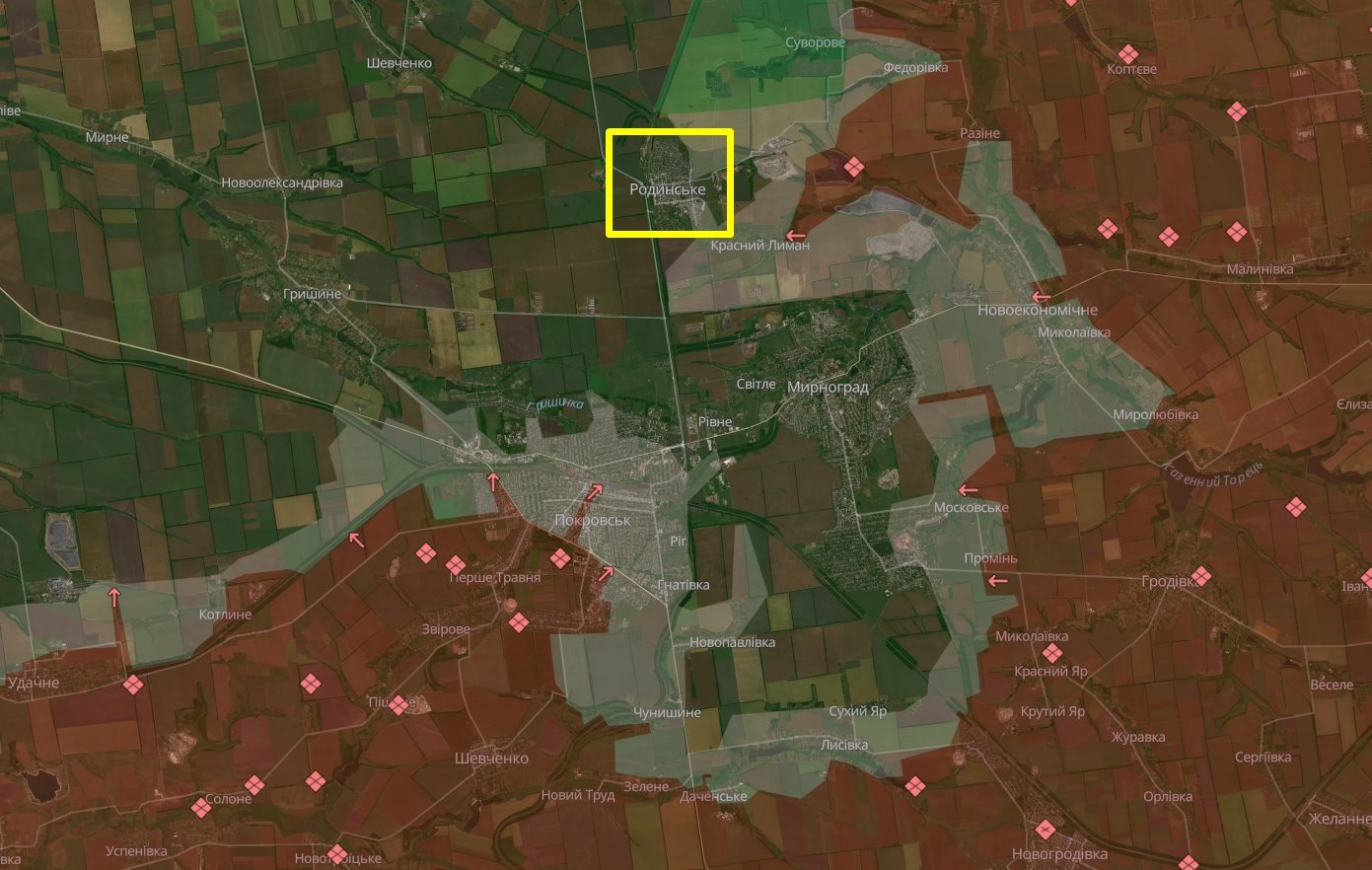 По данным украинских военных, удержание Родинского критически важно для стабильной обороны Мирнограда и снабжения подразделений на юго-западных подступах.