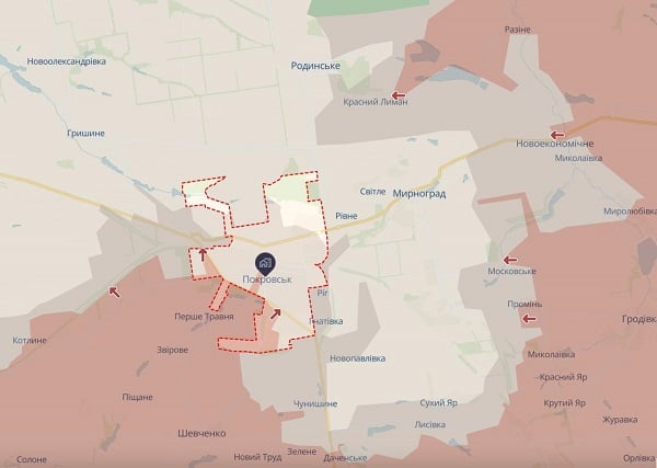План командования армии РФ заключается в том, чтобы наступающая с запада 2-я Общевойсковая армия встретилась с 51-й армией, наступающей со стороны Красного Лимана, – далее последует окружение и полный захват Покровска.