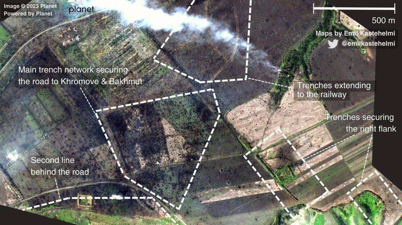 По словам аналитиков, новые линии обороны оказываются практичнее и дешевле, а главное - устойчивее к российским авиабомбам. Большие укрепрайоны часто были уничтожены еще на этапе подхода российских войск, тогда как длинная "эшелонированная" линия препятствий требует от атакующих постоянных затрат сил, времени и техники.