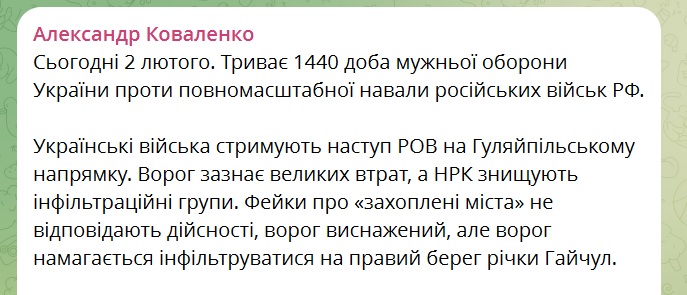 Гуляйполе уже более двух месяцев остается серьезным препятствием для планов противника. Именно здесь Россия пыталась быстро создать плацдарм для дальнейшего удара в сторону Запорожья и выхода на правый берег реки Гайчул. План провалился: город держит оборону, а российские подразделения застряли и вынуждены действовать малыми инфильтрационными группами.