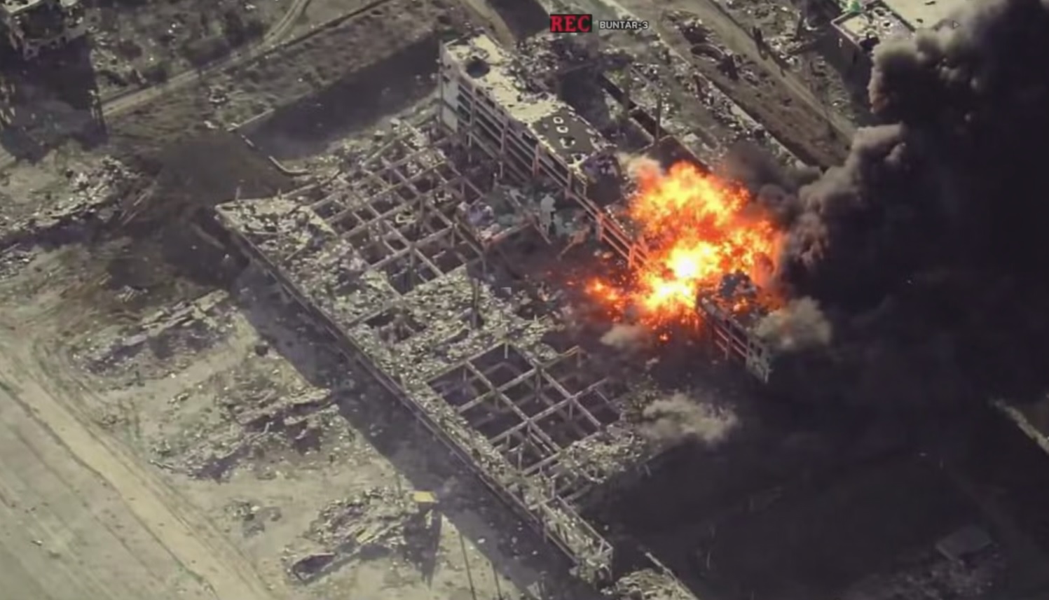 Удар был нанесен 7 марта. В результате произошла мощная детонация боеприпасов.