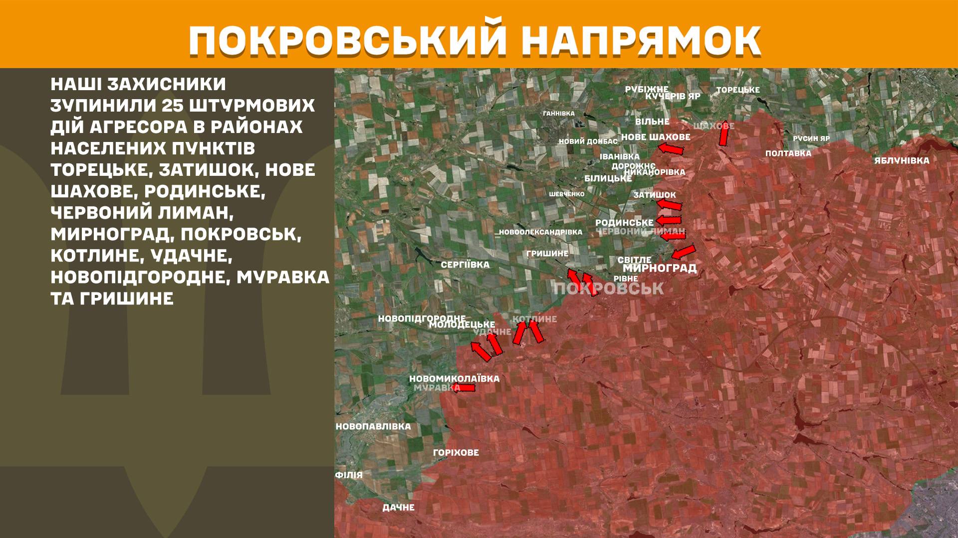 Согласно информации Генштаба ВСУ, вчера, 13 марта, на Покровском направлении российские оккупанты 25 раз атаковали позиции ВСУ. Украинские бойцы все атаки отбили. Бои шли в районах населенных пунктов Торецкое, Новое Шахово, Родинское, Красный Лиман, Мирноград, Покровск, Котлино, Удачное, Гришино и др.