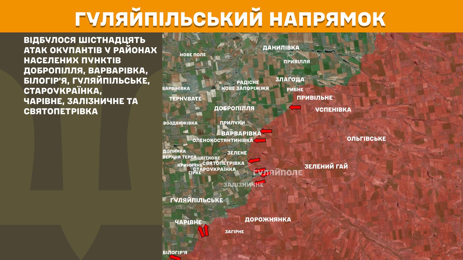 Силы обороны Украины отбросили вражеские подразделения на Гуляйпольском (Запорожская область) и Александровском (стык Запорожской и Днепропетровской областей) направлениях во время контрнаступление, которое началось в первых числах февраля 2026 года. Согласно данным руководителя Центра изучения оккупации Петра Андрющенко, сейчас враг в районе Гуляйполя пытается восполнить огромные потери, понесенные там во время осенне-зимнего наступления.