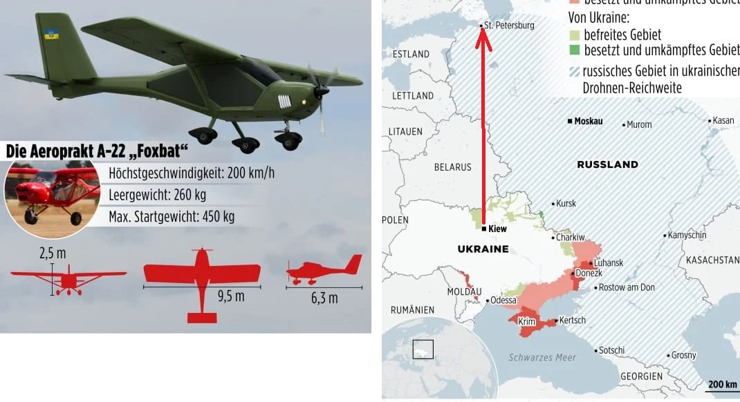 Украина впервые со времен Второй мировой применила авиабомбы по целям в Ленинградской области. Для операции использовались модернизированные самолеты "А-22" с дальностью в 1200 км.