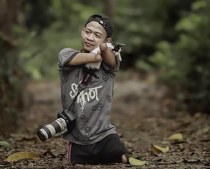 "Хочу, чтобы люди видели мой талант, а не то, каким я родился!" – парень без рук и ног освоил профессию фотографа - кадры
