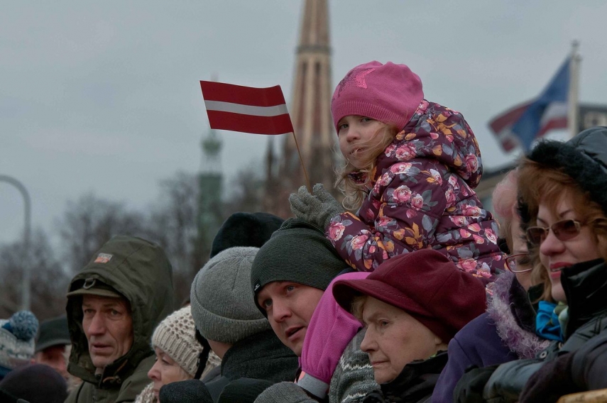 Как известно, организаторами Марша была местная политическая сила "Национальное объединение". Впереди всех участников акции шел сопредседатель партии Райвис Дзинтарс, в руках которого был вишнево-белый флаг Латвии.