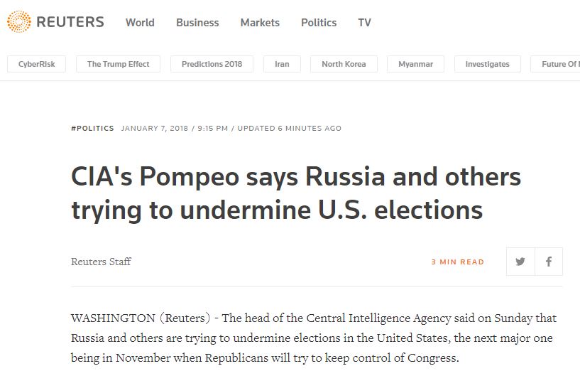 Глава Центрального разведуправления США (ЦРУ) Майк Помпео уверяет, что вмешательство Кремля в выборы американского президента несомненно имело место.