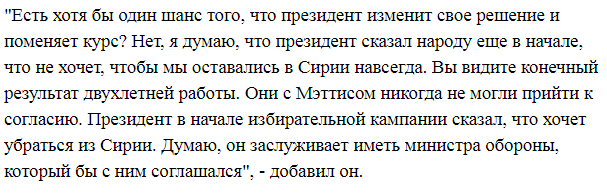 Между Трампом и Мэттисом всегда оставалось напряжение, особенно в вопросах армии на территории Сирии.