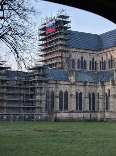 Триколор РФ висит на соборе в Солсбери – реакция правительства и местных жителей: кадры