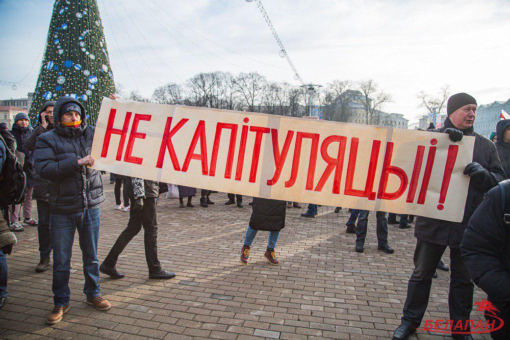 Тысячи граждан Беларуси вышли на акцию протеста против интеграции с Россией, чтобы отстоять независимость своего государства. На главной площади Минска люди кричат патриотические лозунги исключительно на беларуском языке и рвут портреты президента РФ Владимира Путина.