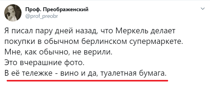 "Я писал пару дней назад, что Меркель делает покупки в обычном берлинском супермаркете.