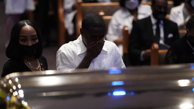 Несмотря на то что церемония прощания была закрытой, попрощаться с Флойдом пришло огромное количество людей. За порядком наблюдали полицейские, людей призывали соблюдать дистанцию из-за коронавируса.