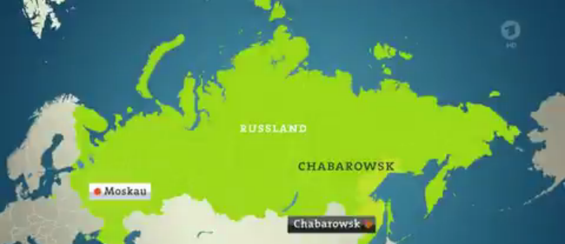 В прайм-тайм во время телепередачи Tagesschau (немецком эквиваленте российской программы "Время") вышел сюжет о протестах в Хабаровске. Мы напомним, что около 30 тысяч человек вышли на акцию в поддержку арестованного недавно губернатора Хабаровского края, члена ЛДПР Сергея Фургала. Его обвиняют в убийстве предпринимателей в середине 2000-х годов.