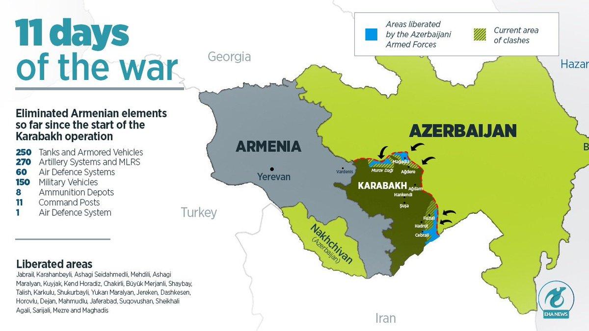 СМИ сообщают, в ближайшие два дня во Франции будет объявлено о том, что в Нагорном Карабахе прекращается острая фаза конфликта обеих сторон и устанавливается перемирие. В данном процессе активно участвует президент Франции Макрон.