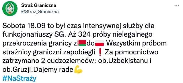 "В субботу, 18 сентября, пограничники были переведены на режим усиленной службы. 324 попытки незаконного пересечения границы из Беларуси", - сообщило ведомство. Это рекордное количество.