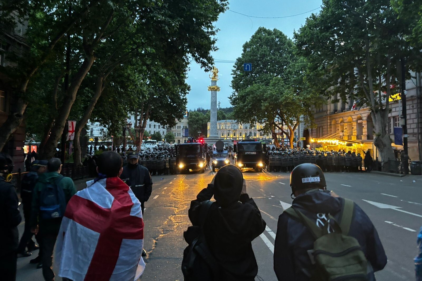 С этих улиц протестующих и вытеснили силовики, чтобы депутаты от "Грузинской мечты" смогли свободно заехать на территорию парламента.