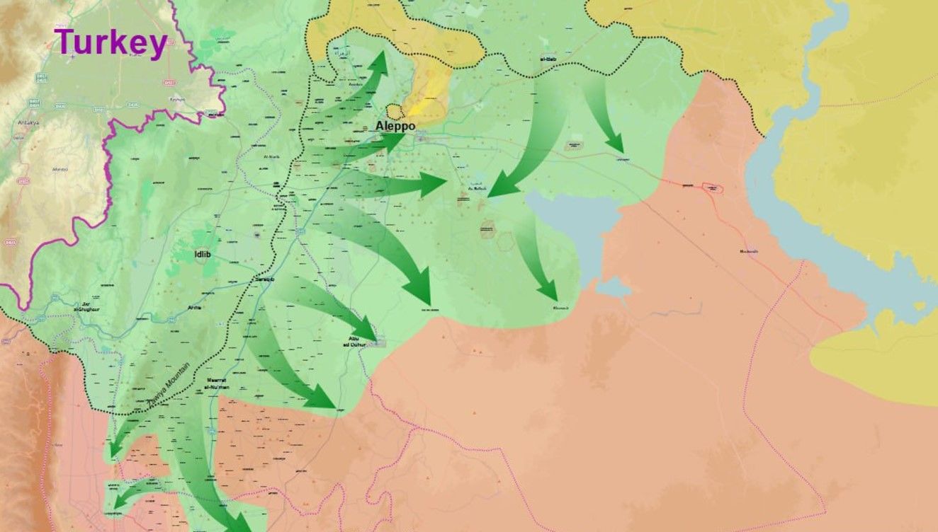 3. При этом на севере и в районах к северо-востоку от Алеппо дружественные ХТШ и СНА (протурецкая Сирийская национальная армия) теснят СДС/YPG/курдов, идут к другу на встречных курсах и, судя по карте, соединились в районе города Сафира и озера Эль-Джаббуль. Армия Асада теряет здесь огромные территории.