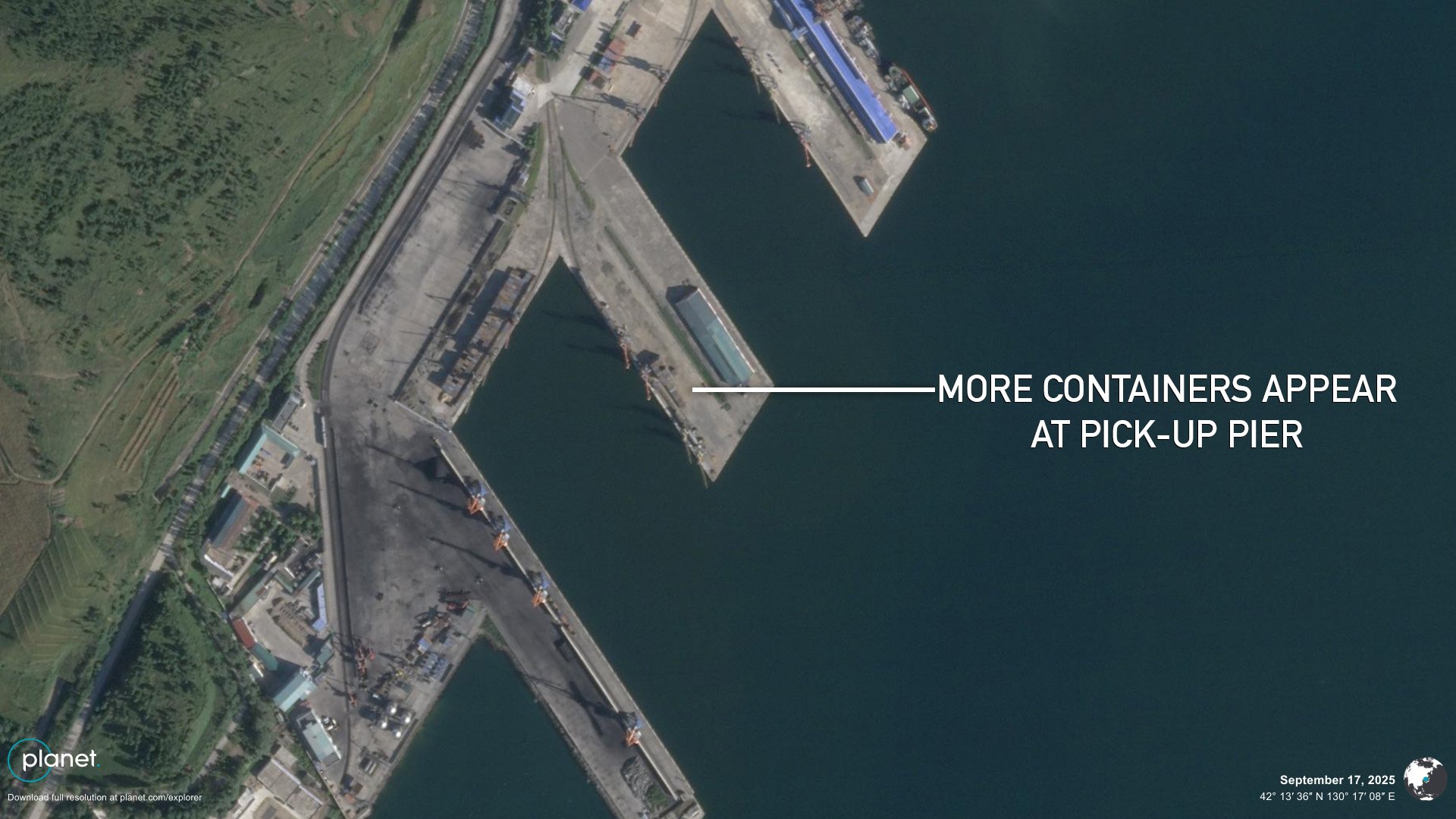 Отсутствие новой активности у причала в Расоне с начала августа по эту неделю позволяет предположить, что Россия и Северная Корея приостановили морскую транспортировку оружия почти на два месяца, хотя она могла продолжаться в это время по железной дороге.
