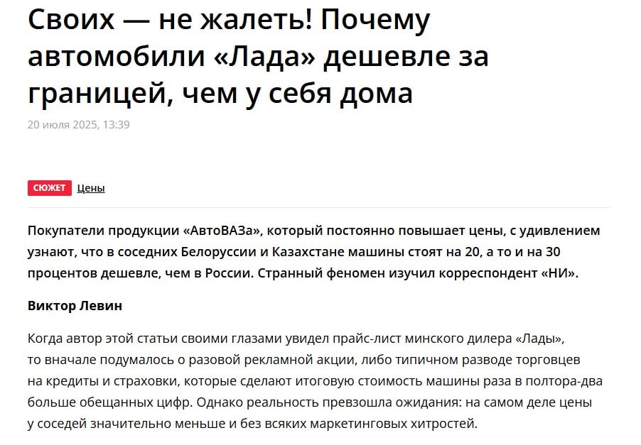 По словам экспертов, более доступные цены на "Лады" у соседей России объясняются конкуренцией: в Белоруссии и Казахстане покупателям доступны модели мировых автопроизводителей, тогда как российский рынок оказался ограничен из-за санкций и ухода многих брендов. Кроме того, в Казахстане налажено собственное производство популярных марок – Skoda, Hyundai, Kia и Haval.