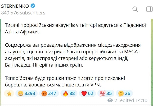 Разоблачение иностранной сетки бьет и по российской пропаганде. Москва годами использует похожие фабрики ботов, выдавая их за "европейских" и "американских" пользователей, чтобы раскачивать выборы, подогревать недоверие к Украине и создавать иллюзию массовой поддержки кремлевских тезисов. Теперь, когда соцсети начали показывать реальное происхождение аккаунтов, становится очевидно, что значительная часть "народного мнения" могла быть лишь скоординированной операцией.