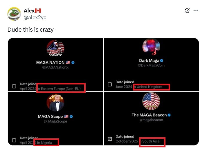 Соцсеть Х (бывший Twitter) внезапно перевернула политическое пространство мира, запустив функцию, которая показывает реальную страну, откуда ведется аккаунт. Достаточно нажать на вкладку Joined, и маска слетает.