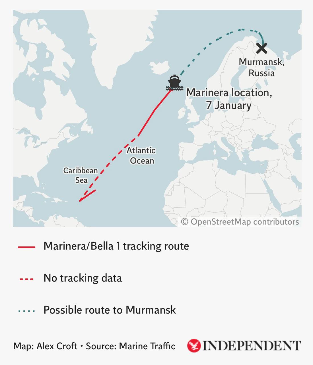 Танкер, ранее известный как Bella-1, более двух недель уходил от американской морской блокады, введенной против судов, перевозящих санкционную нефть. Он прошел Карибское море, вышел в Атлантику и в процессе сменил флаг на российский — очевидная попытка прикрыться Москвой.