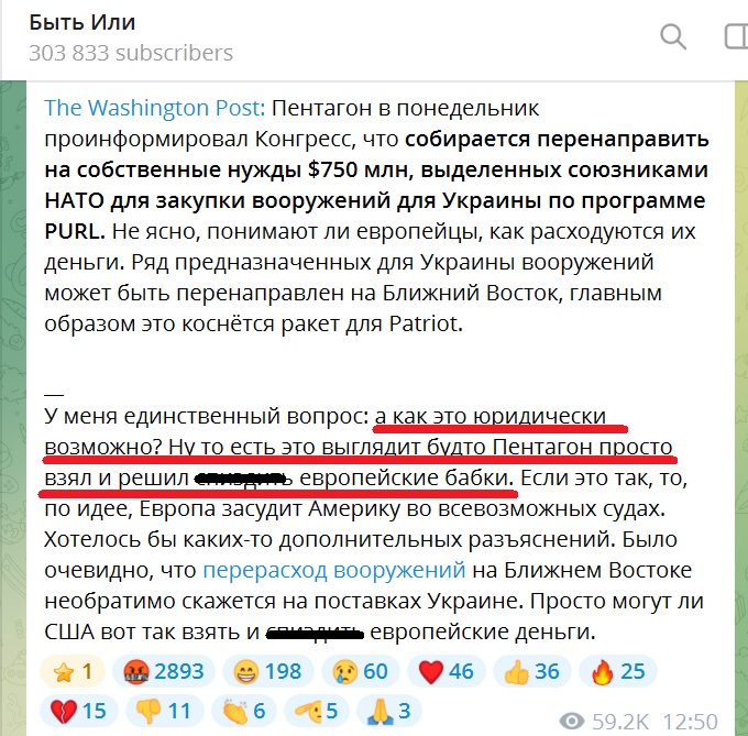 Пентагон уже уведомил Конгресс о намерении перенаправить около 750 млн долларов, выделенных союзниками по программе PURL, на пополнение собственных складов США, а не на дополнительные поставки Украине.
