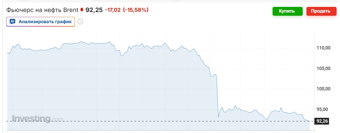 На фоне сигналов о возможной деэскалации напряженности цены на нефть начали снижаться, поскольку инвесторы заложили в котировки вероятность восстановления стабильных поставок через Ормузский пролив.